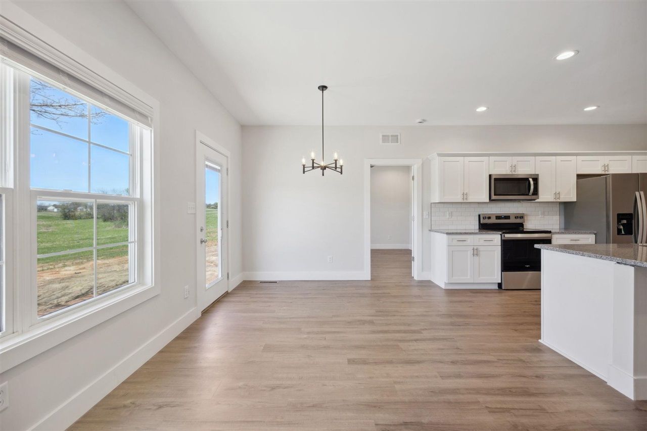 Beautiful new construction 4 bed/2 bath home located in Harmony Landing Subdivision. Enjoy spacious 9 foot ceilings and ceiling fans throughout. The master bath features stylish double vanity and tile walk-in shower, while the second bathroom includes a tub/shower combo. The kitchen boasts granite countertops, stainless steel appliances, a sleek tile blacksplash, and white cabinetry. This home is directly across from the community amenities featuring pickleball and basketball courts, playground, and 2 pavilions. Call today to schedule your showing!