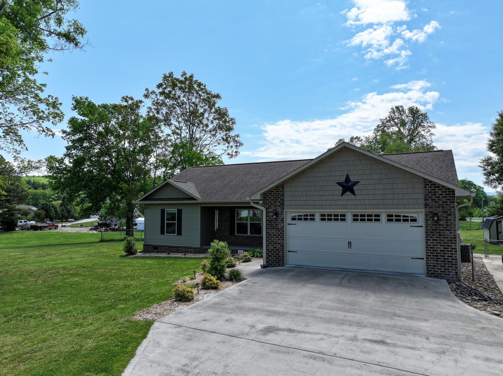 Welcome to your dream home! This roomy 3-bedroom, 2-bathroom house boasts 1648 square feet of living space. Located in Rivers Edge Estate in the Boyds Creek area, it offers easy access to all the conveniences and attractions that Sevier County has to offer. The split floor plan ensures privacy, while the vaulted ceilings and open concept layout connecting the kitchen, dining room, and living room make it perfect for entertaining guests. You'll find luxury vinyl plank flooring throughout the home. The kitchen is packed with storage options and features granite countertops, a huge island, and stainless steel appliances. Retreat to the master bedroom, which includes a large walk-in closet and a recently remodeled beautiful tile shower. On the opposite end of the house, there are two additional spacious bedrooms with large closets, and the guest bath provides plenty of room. This area also features a foyer that can be closed off from the rest of the home with a stunning set of sliding barn doors. The lot has ample space, and you can enjoy the covered front and back porches along with a fenced backyard, perfect for watching the deer that come to visit. There's also a storage building for all your lawn equipment, grill, and tools. The concrete driveway offers plenty of parking for you, your guests, and extra space for RVs, watercraft, or utility trailers. This neighborhood borders the French Broad River, with public access just minutes away. Call today to schedule your tour of this lovely home! All details are from tax records, and buyers should verify all information before making an offer. Drone photography was used in photos. Lot lines on photo are approximate.