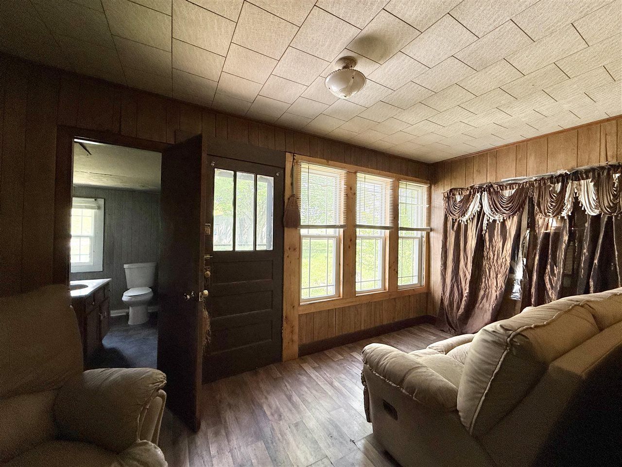 This charming farmhouse sits on approximately 1 acre with mature trees and fence on three sides in the country surrounded by farm land. The home needs some TLC, but will make a great starter home or investment property. There is 2 rooms upstairs and then on the main level you have a nice size living room, kitchen, bedroom, bonus room, bathroom and utility room. There is a storm cellar area. There is a 30x36 detached garage with electric that would be perfect for storage or a great workshop. There is a covered front porch and room for a fit pit to enjoy the outdoors. If you are looking to restore a farmhouse or maybe just looking for an investment opportunity this property would be perfect for you. The home will not qualify for secondary mortgage but may possibly qualify for a renovation loan. Must be pre approved to view home. The home is being Sold As Is. Call Today to schedule your private viewing.